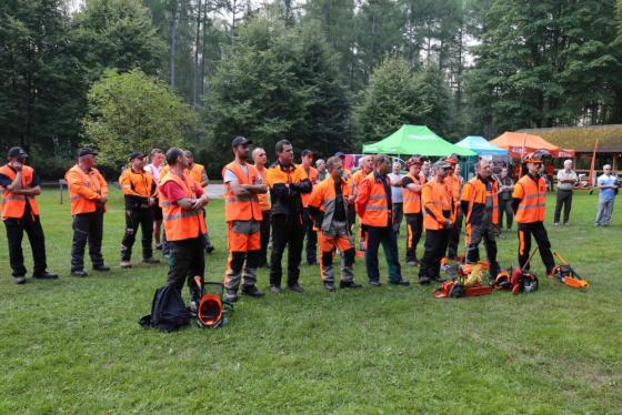 Rozpoczęliśmy standardowo od rejestracji zawodników, podczas której zawsze sprawdzane jest, czy są odpowiednio przygotowani do zawodów i czy pilarka – podstawowe narzędzie pracy pilarza, jest sprawna i bezpieczna. Następnie, podczas oficjalnego rozpoczęcia, przedstawiciele Państwowej Inspekcji Pracy nadinspektor Alfred Mazurek i st. inspektor Grzegorz Stęchły przypomnieli zawodnikom podstawowe zasady bezpieczeństwa i higieny pracy. W tak niebezpiecznym zawodzie, jakim jest praca pilarza, to właśnie na bezpieczeństwo kładzie się nacisk i musi być ono priorytetem, a szkolenia BHP powinny odbywać się rokrocznie.